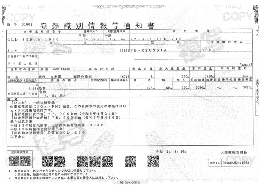 | MANLIFT TRUCK, 79385KM *一時抹消 *R券 JPY 8,740 | |
