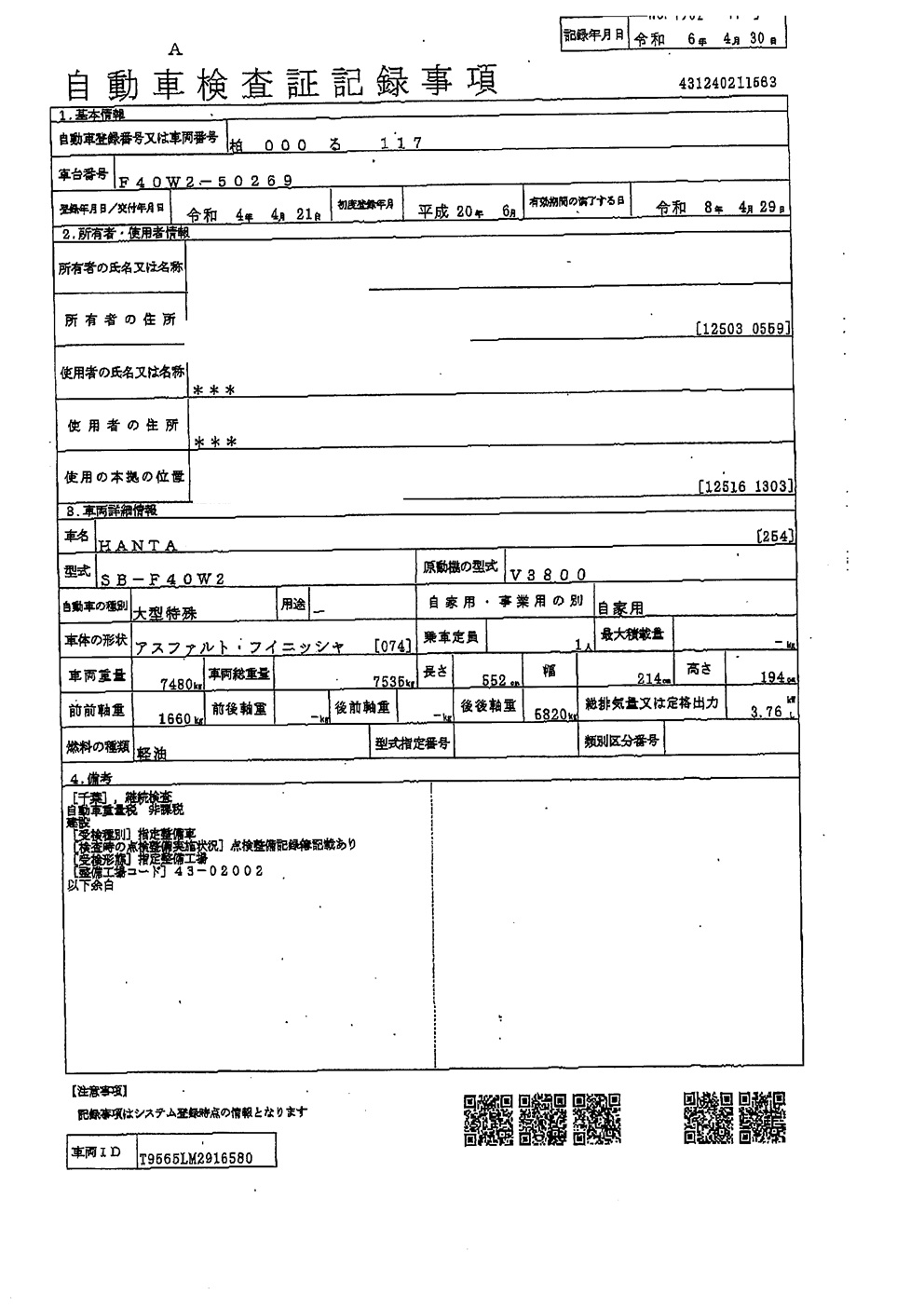 | ASPHALT FINISHER *一時抹消渡し | |