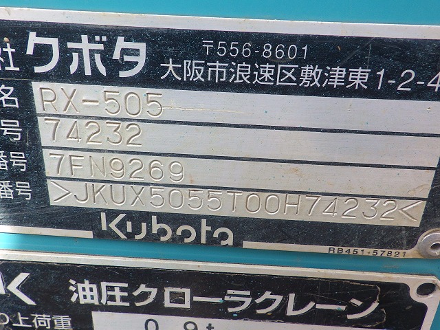 1255009 | KUBOTA | ミニ油圧ショベル | RX-505 | 74232 | |