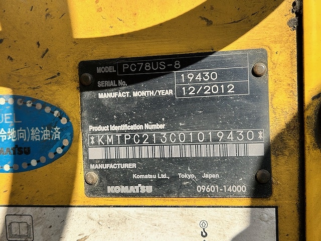 2255001 | KOMATSU | 油圧ショベル | PC78US-8 | 19430 | |