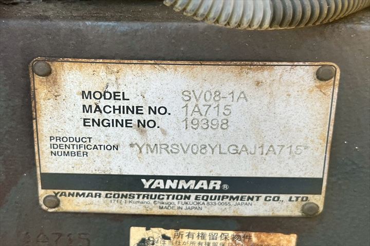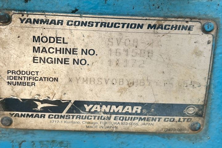 | 1257001 | YANMAR | ミニ油圧ショベル | SV08-1 | 11551B | |