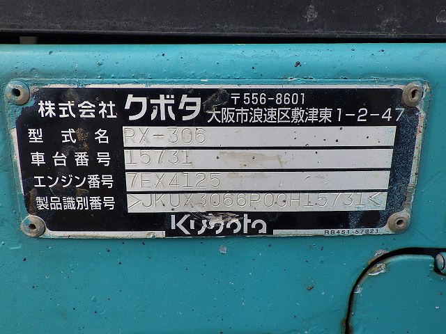 | 1257005 | KUBOTA | ミニ油圧ショベル | RX-306 | 14202 | |