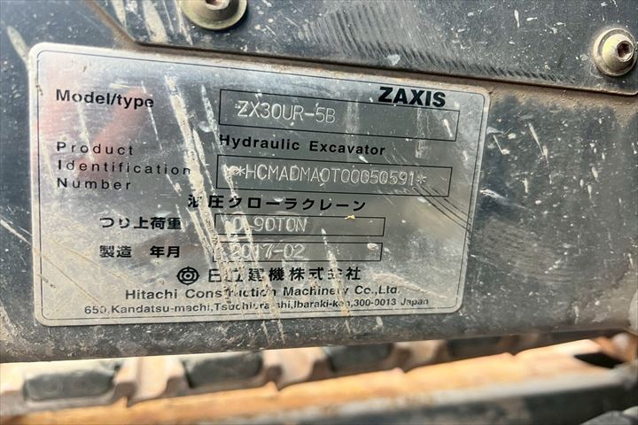 | 1257006 | HITACHI | ミニ油圧ショベル | ZX40UR-5B | 50003 | |