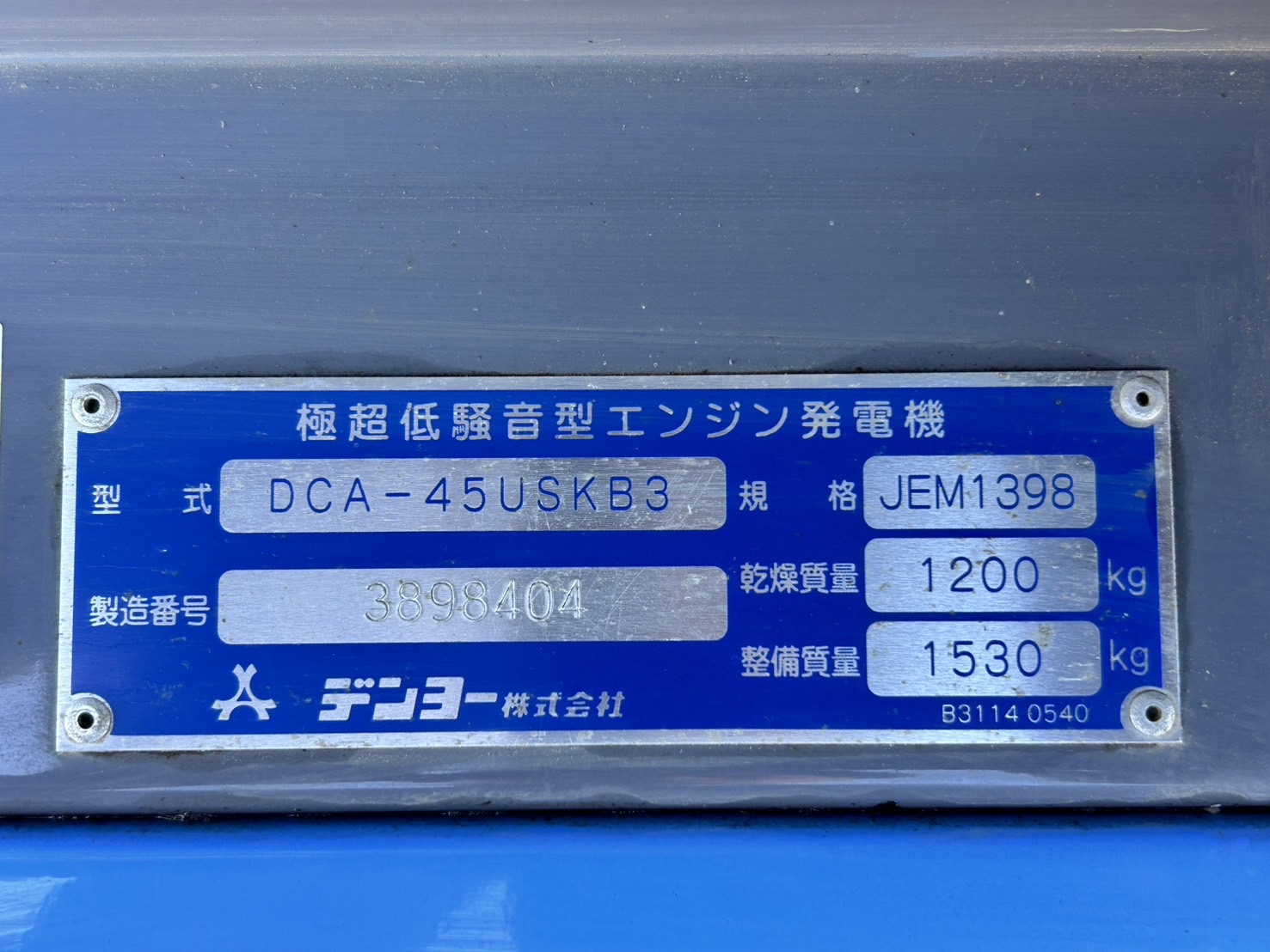 | 9258023 | DENYO | 発電機 & ウェルダー | DCA-45LSKB | 3890364 | |