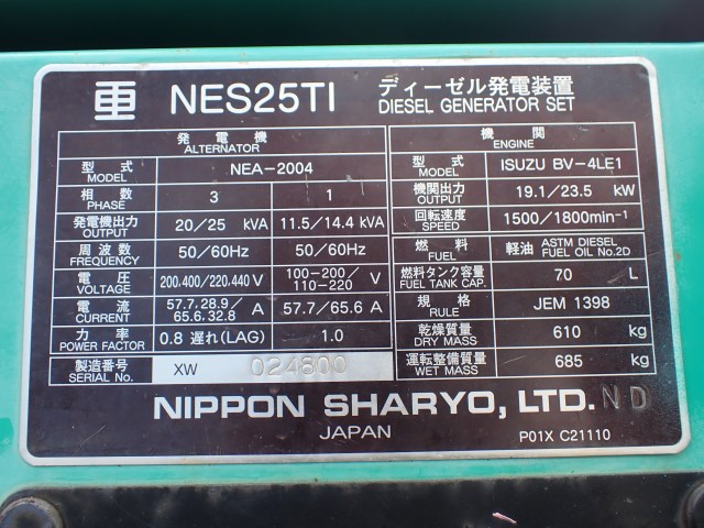 | 9258034 | NIPPON SYARYO | 発電機 & ウェルダー | NES25TI | XW024800 | |
